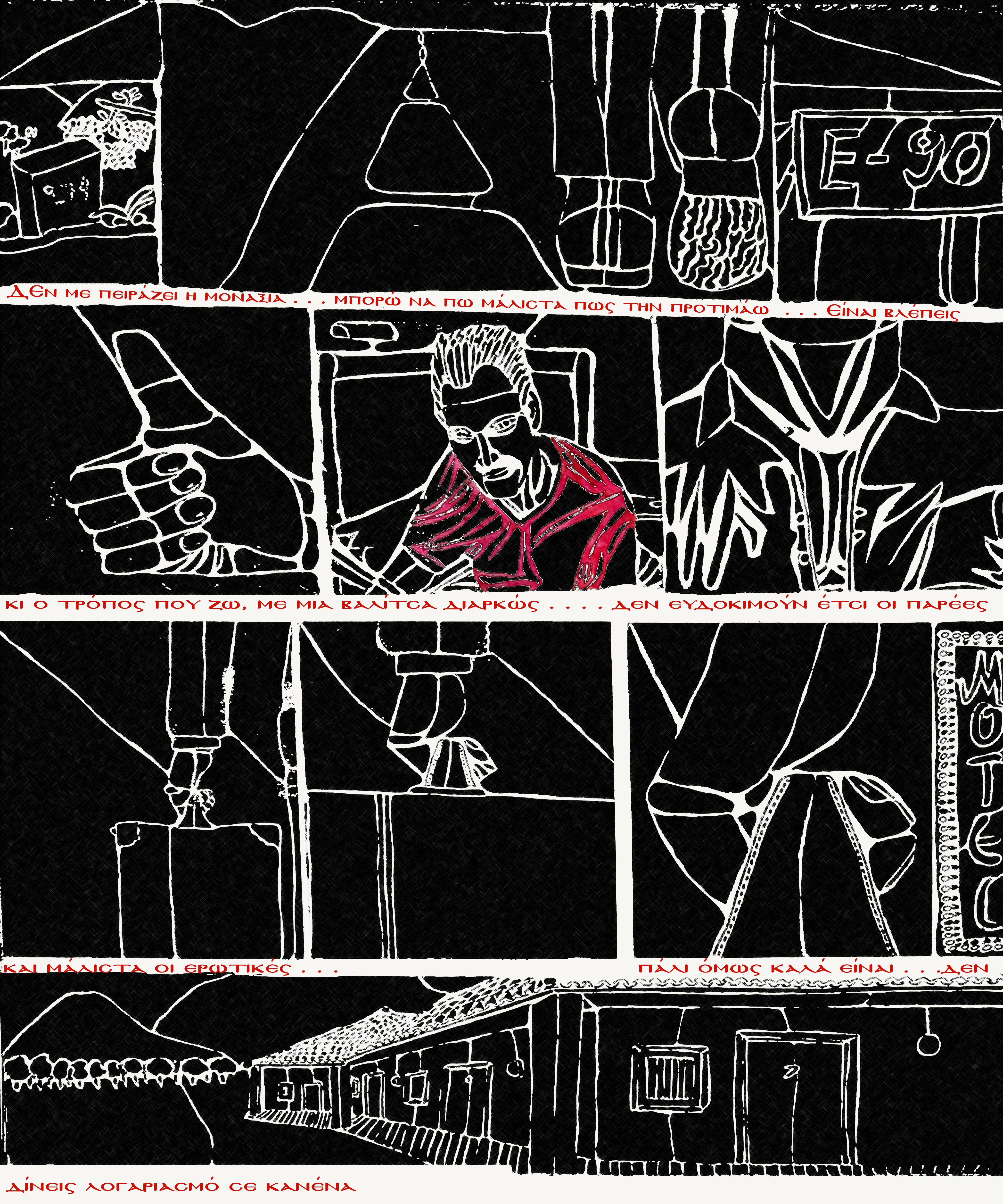 Χωρίς να θέλω να χαρακτηρίσω τον εαυτό μου «κομικά» χρησιμοποιώ το μέσο για να αφηγηθώ κάποιες ιστορίες που θεωρώ πως μόνο έτσι μπορώ να τις αποδώσω όπως τους πρέπει.