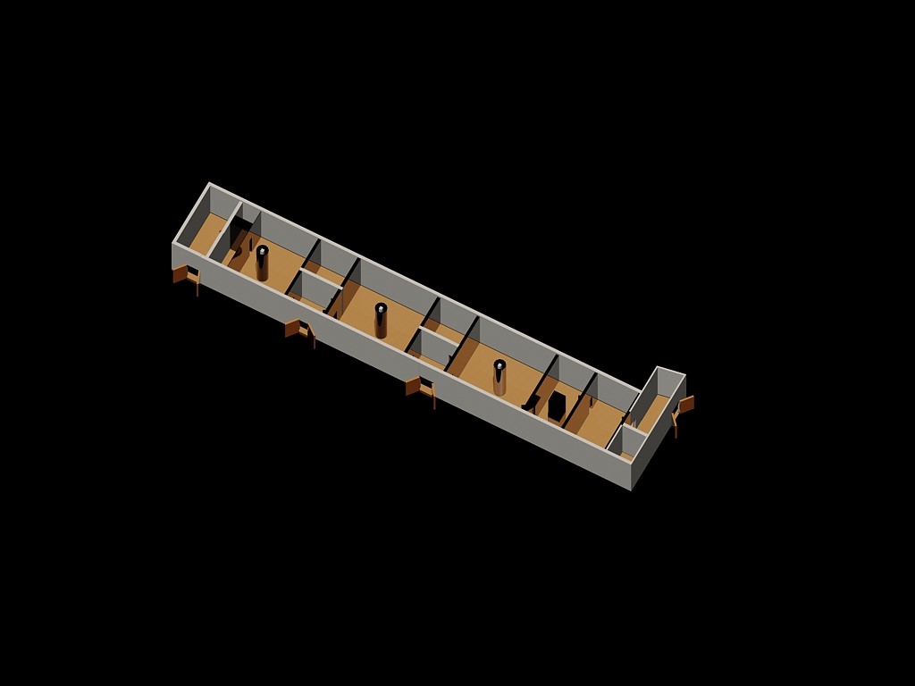 Ο χώρος μετά από την κατάλληλη προεργασία που θα γίνει, ώστε να μονωθεί και να στεγανοποιηθεί για τυχόν υγρασίες, θα χωριστεί σε 6 διαμερίσματα– στάδια μετάβασης. Τα διαμερίσματα αυτά θα είναι ηχομονωμένα διασφαλίζοντας ότι η λειτουργία του καθενός από αυτά θα μπορεί να είναι στο μέλλον ανεξάρτητη. Ο διαχωρισμός τους θα γίνει με ημιδιαφανή υλικά για να μπορούν τα χωρίσματα αυτά να χρησιμοποιηθούν σαν οθόνες προβολής δίνοντας ακόμα και την ψευδαίσθηση της τρίτης διάστασης.
